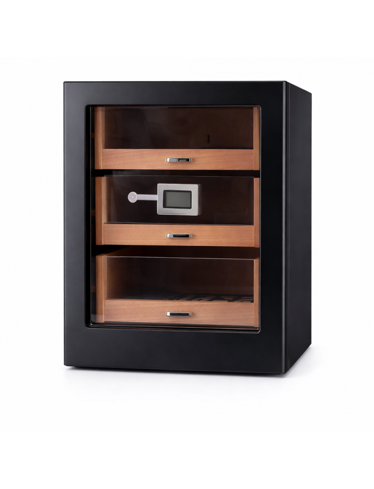 Dahili dijital nem ve sıcaklık göstergesi ile ortam değerlerini kolayca takip edebilir, klasik nemlendirici sistemi sayesinde purolarınızı her zaman ideal nem seviyesinde saklayabilirsiniz. Üç çekmeceli yapısı ile purolarınızı düzenli ve güvenli şekilde yerleştirme imkanı sunar.