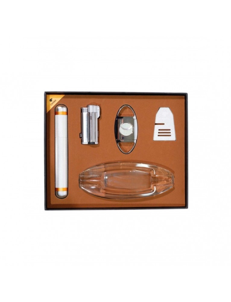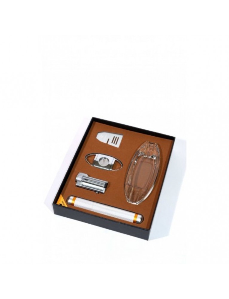 Eksiksiz aksesuar seti ile puro keyfini en üst seviyeye taşır.Şık hediye kutusu, özel günlerde puro sever dostlarınız için prestijli bir hediye alternatifi sunar.Rüzgâra dayanıklı jet alevli çakmak sayesinde dış mekânda güvenle kullanım sağlar.Doldurulabilir çakmak ve dayanıklı malzeme uzun ömürlü kullanım garantisi verir.Taşınabilir puro tüpü seyahatlerde puroyu güvenle korur.
