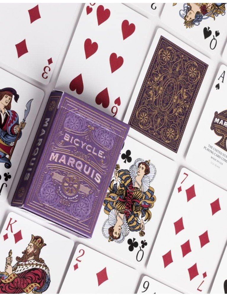 Bicycle Creatives tasarım hayranları için benzersiz oyun kartlarıdır. Bicycle Marquis oyun kartları ile 1920'li yılların Art Deco döneminin hissi yeni bir hayata dönüşür. Kaplamasız erik renkli ambalaj eşsizdir ve özellikle özel bir dokunma hissi ile etkileyicidir. Logo ve ambalajın diğer detayları holografik altın folyo ile işlenmiştir. Hem katlanır kutu hem de kartlar ilk kez 1900 yılında üretilen bir tasarıma dayanmaktadır. Özellikle kişisel resim kartları öne çıkan özellikler ve tarihi referans alan küçük sanat eserleridir. Gerçek bir sevgili parçası ve koleksiyoncular için olmazsa olmaz.
