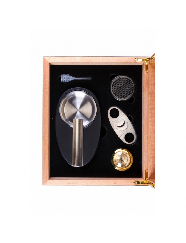 Cohiba Humidor Puro Kutusu Seti Classic, puro tutkunları için özel olarak tasarlanmış premium bir saklama çözümüdür. 26x22x12 cm boyutlarındaki bu şık karbon gri humidor, purolarınızı ideal koşullarda muhafaza etmenizi sağlar. Set içerisinde küllük ve puro makası da bulunmaktadır. Özenli kullanım gerektiren bu humidor, yüksek kaliteli işçiliği ve klasik tasarımıyla göz dolduruyor. Normal boyutlu purolar için ideal olan bu set, puro koleksiyonunuzu korumak ve sergilemek için mükemmel bir seçimdir. Hem fonksiyonel hem de dekoratif bir aksesuar olan bu humidor seti, puro tutkunlarının vazgeçilmez parçası olacak.